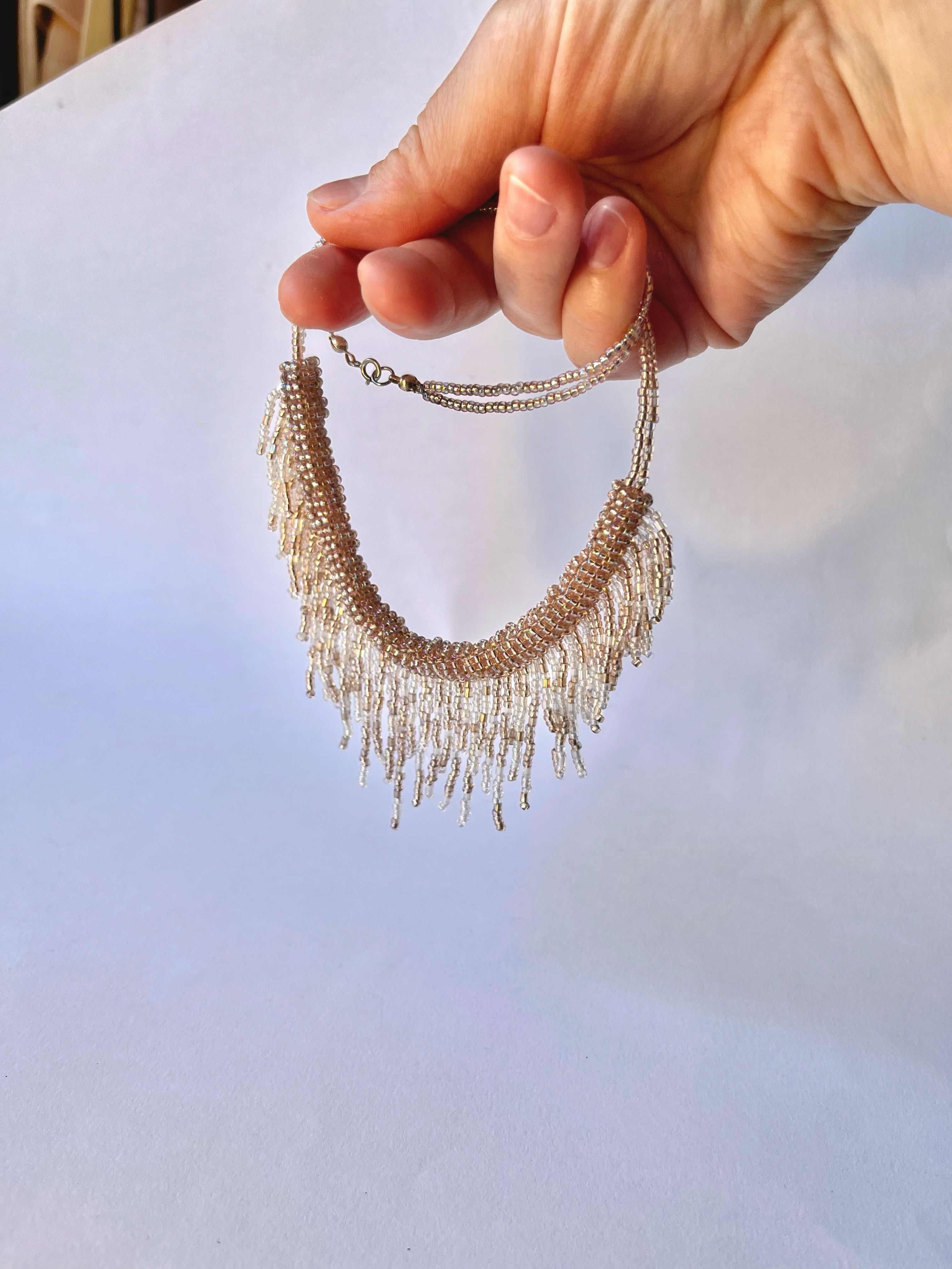 SHIMMER NUDE | Silver Crystal | 2 colors | festive necklace | beaded handmade