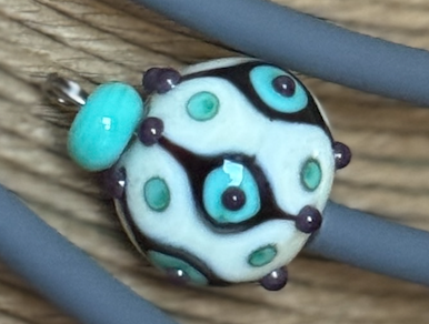 Purple and Cream Swirl Wirewapped Lampwork Pendant