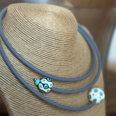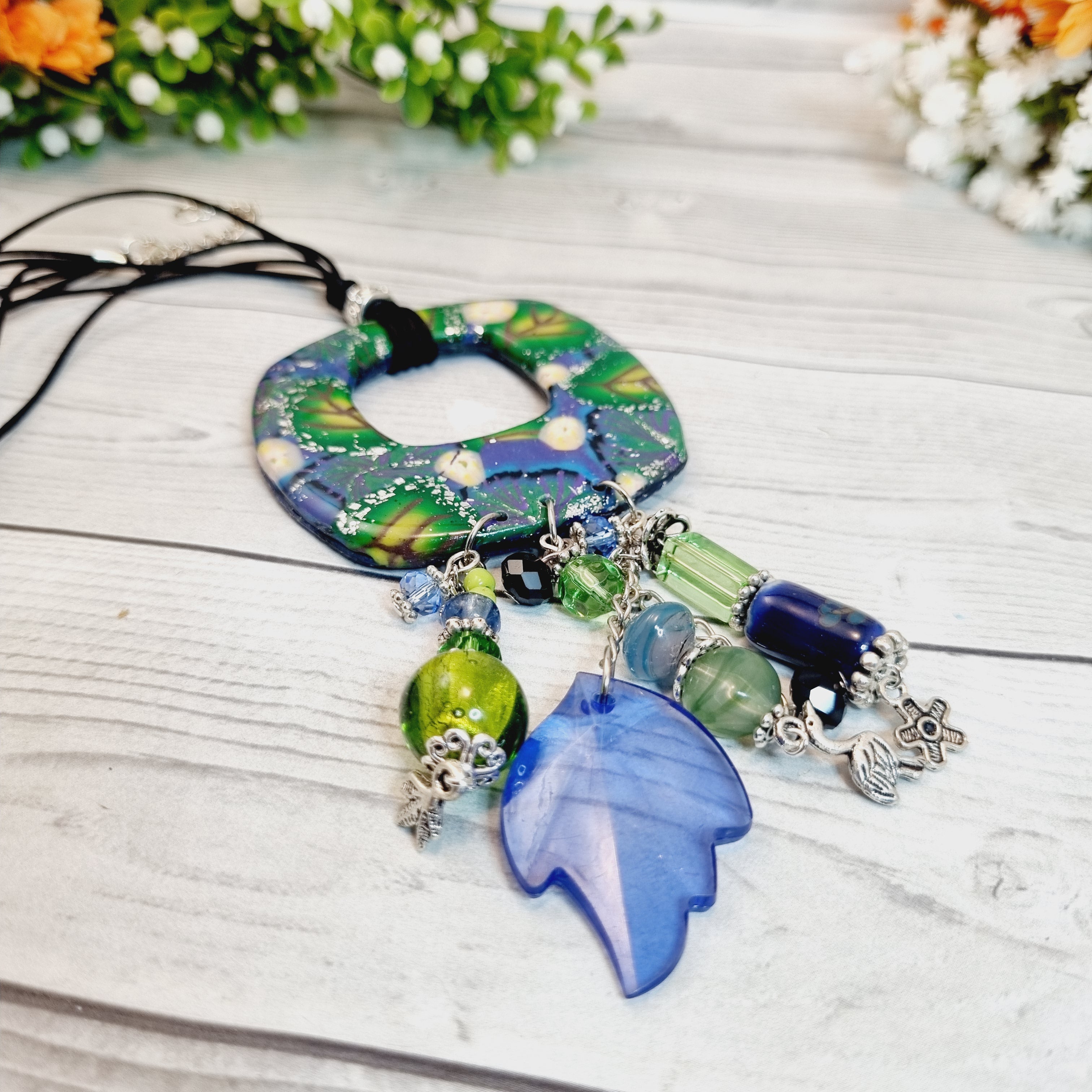 Green Blue and Orange Floral Polymer Clay Choker Necklace