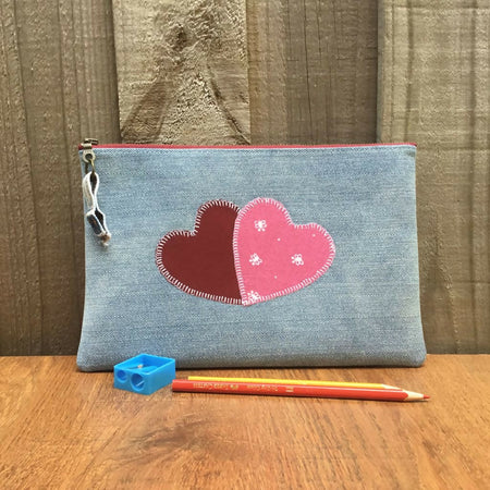 Upcycled Denim Pencil Case – 3 Denim Hearts
