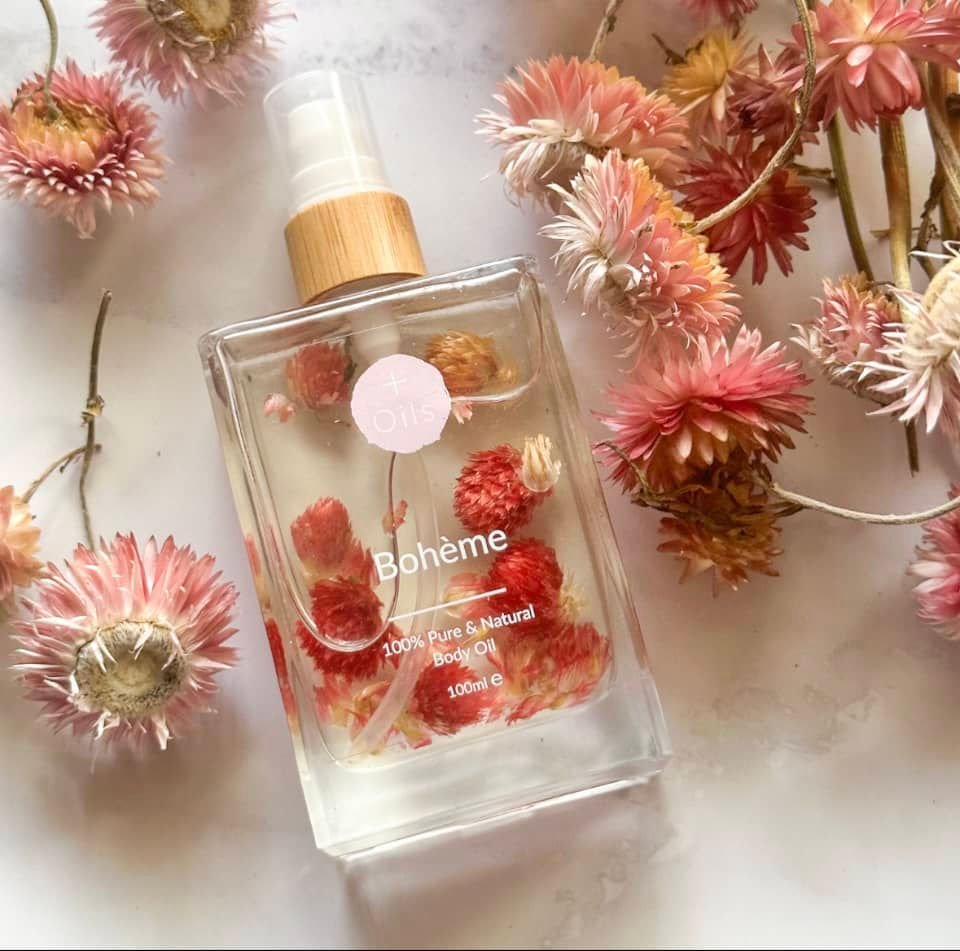 Bohème is a highly nourishing body oil, rich in nutrients such as Vitamin E and B, and antioxidants, providing long lasting moisture & hydration for the skin.