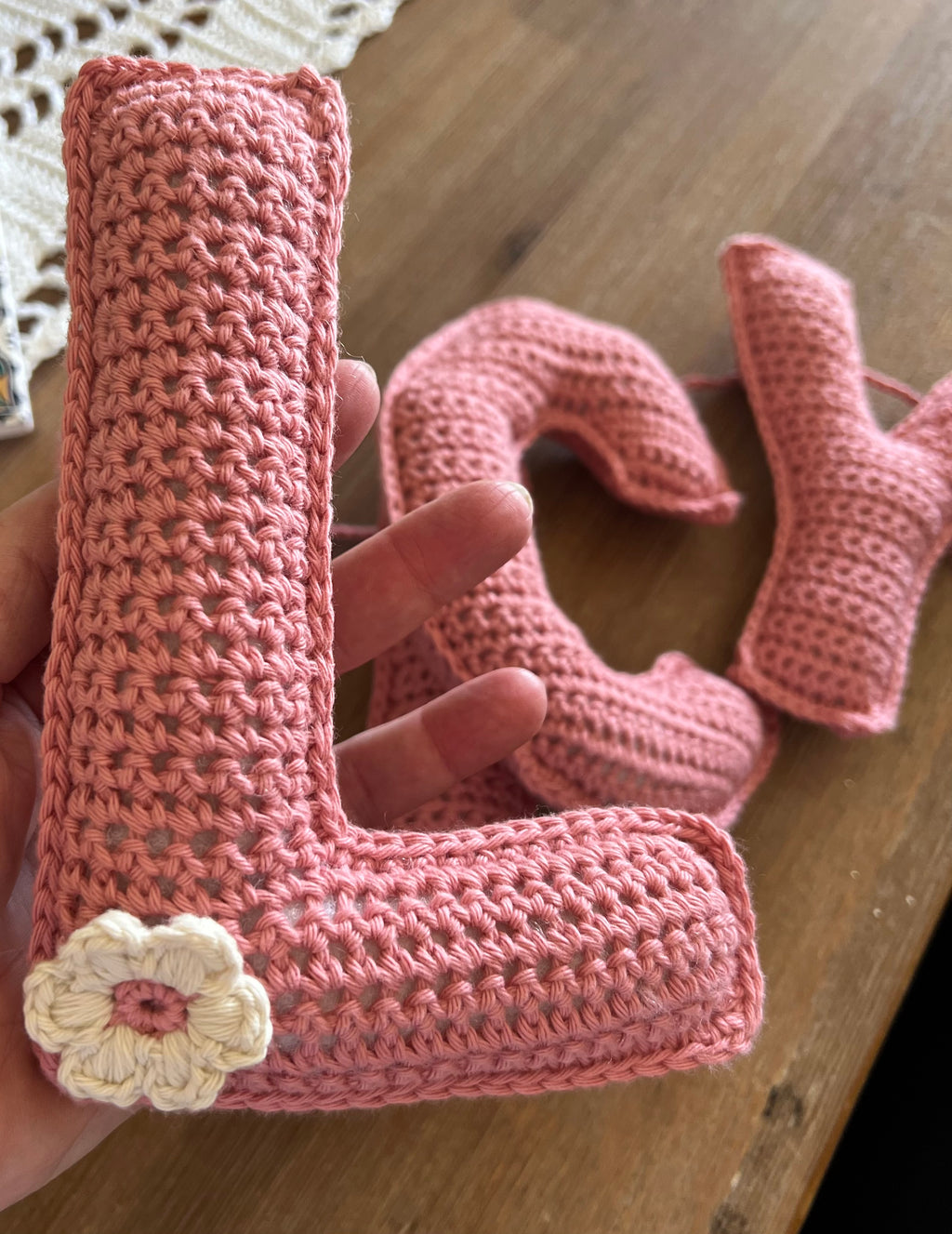 Multiple letters come with a crochet chain string for hanging as a garland.