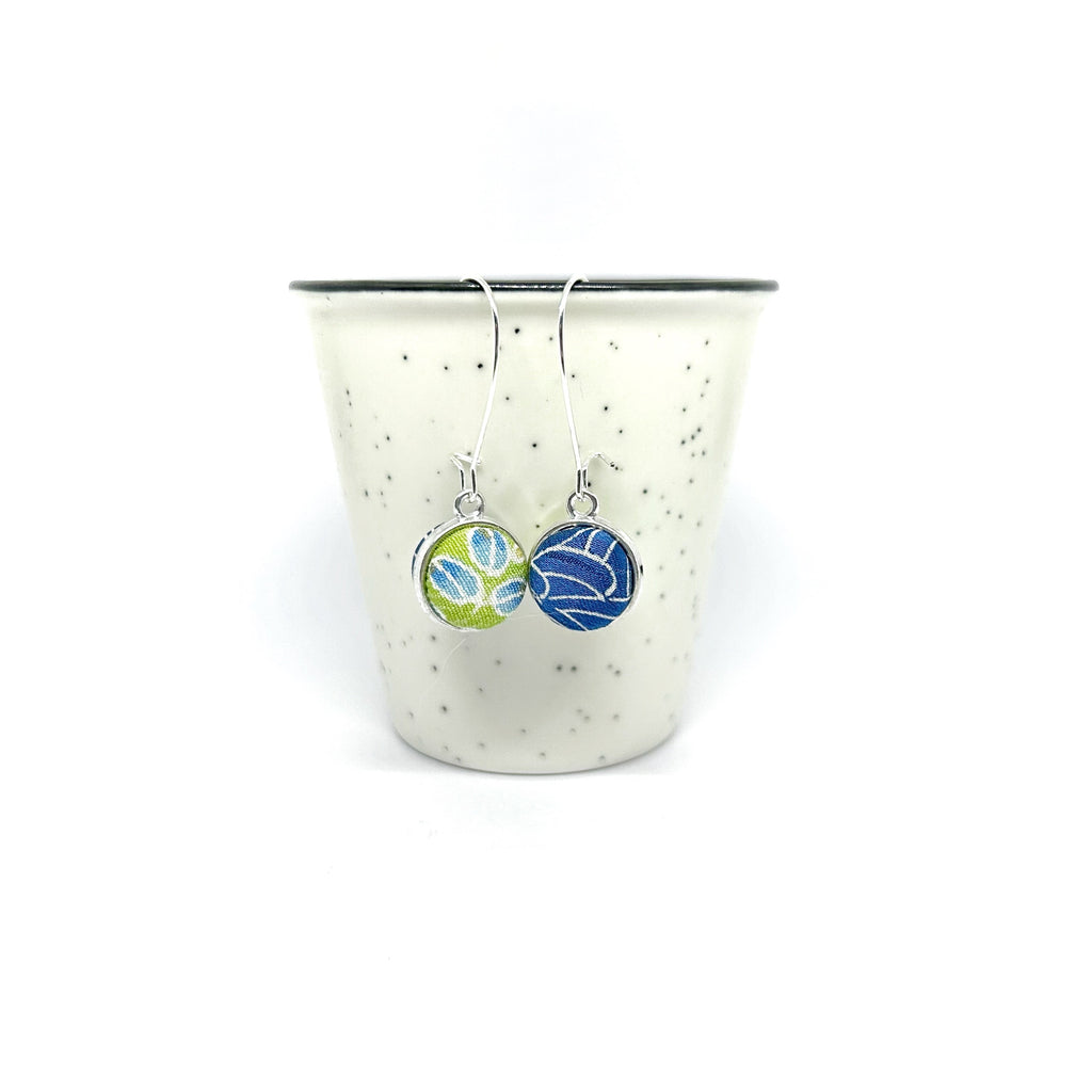 These original DOUBLE SIDED button earrings are handmade by me using beautiful Japanese Kimono. They feature 1.3 cm buttons, securely set in a silver plated, double bezel.