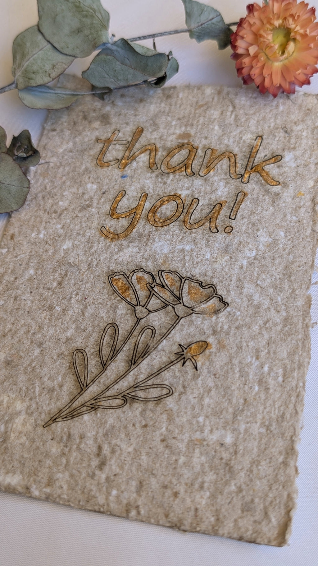 These thank you cards are made slowly and intentionally from recycled watercolour paper, giving each one a soft texture and beautifully organic finish.
