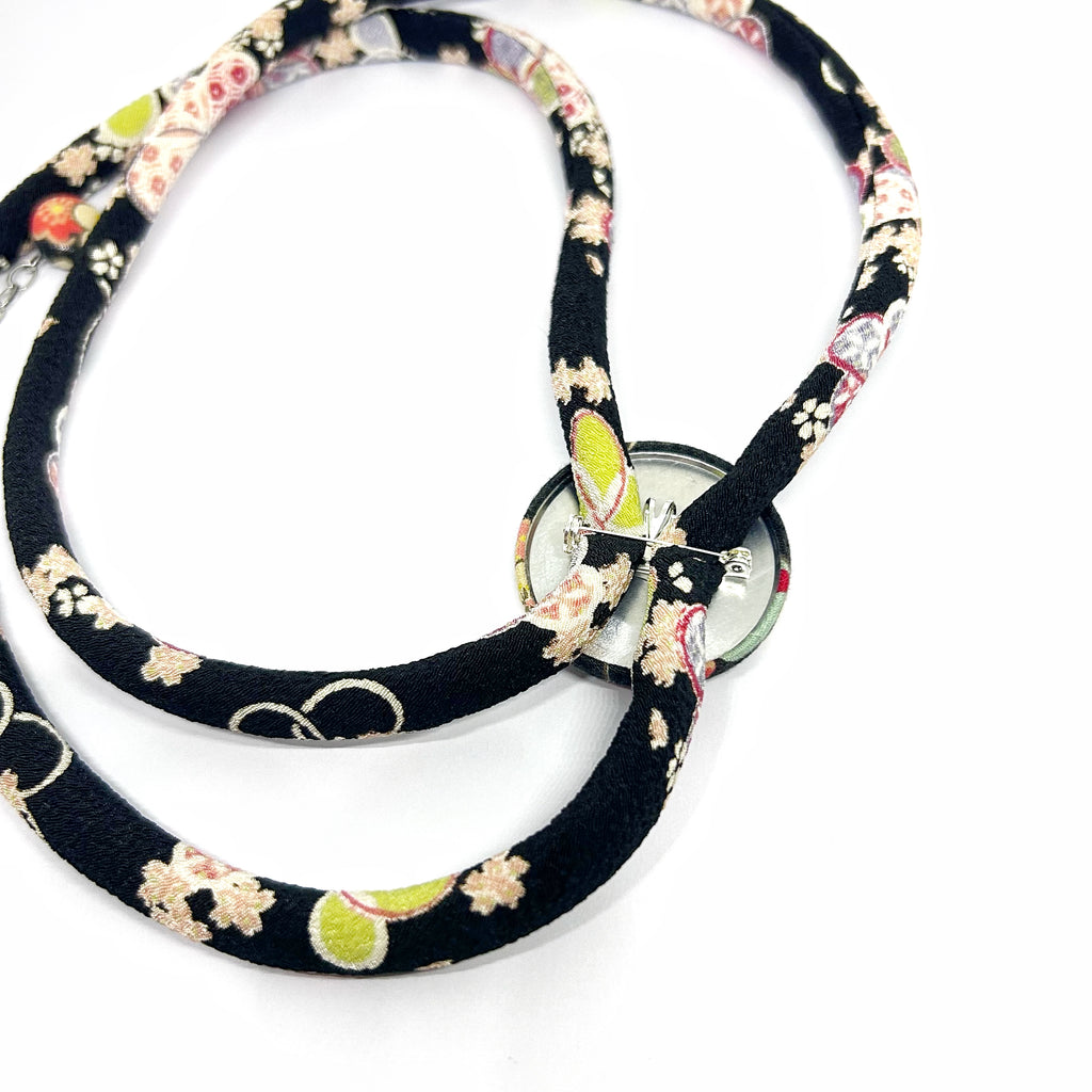 This original Kimono Cord Necklace is handmade by me using Japanese Chirimen Cord and Vintage Kimono Buttons.