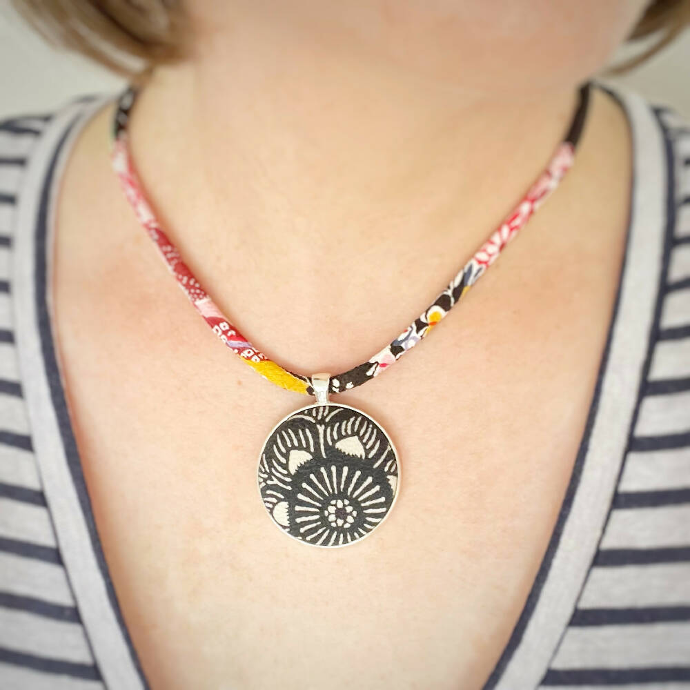 This Kimono Pendant Necklace is handmade by me using Japanese Chirimen Cord and Vintage Kimono Buttons.
