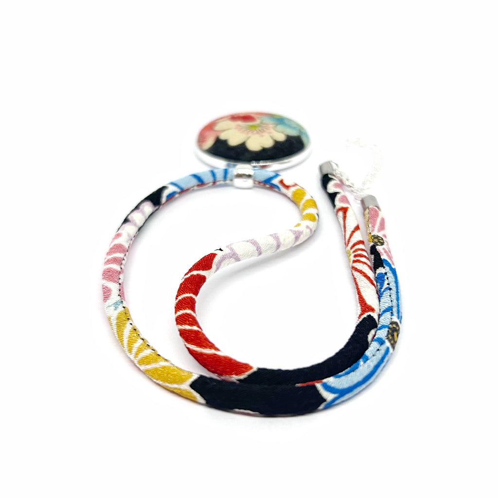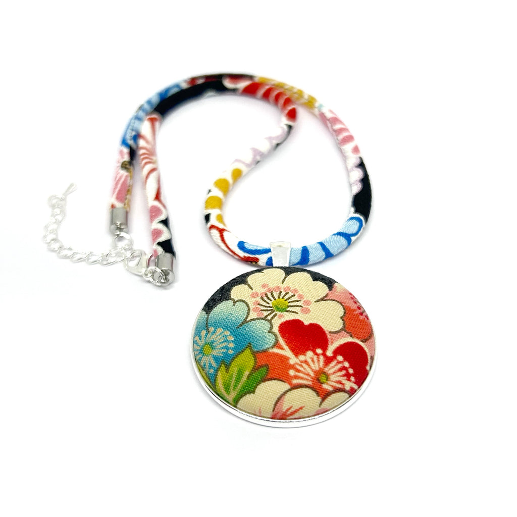 Kimono Pendant Necklace - Red and Aqua