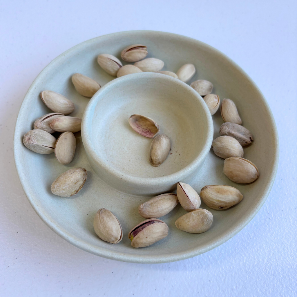 Crafted on the pottery wheel our Olive - Nut - Dip bowls are perfect for serving olives or nuts with the added small bowl for pips or shells. They are also perfect for a small serving of dip & biscuits.