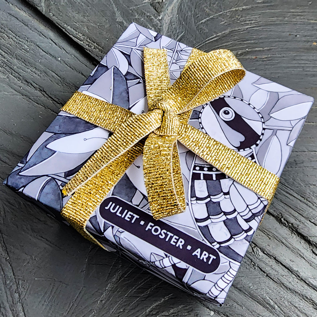 The earrings come in a beautiful handmade gift box featuring our signature fairy wren artwork.