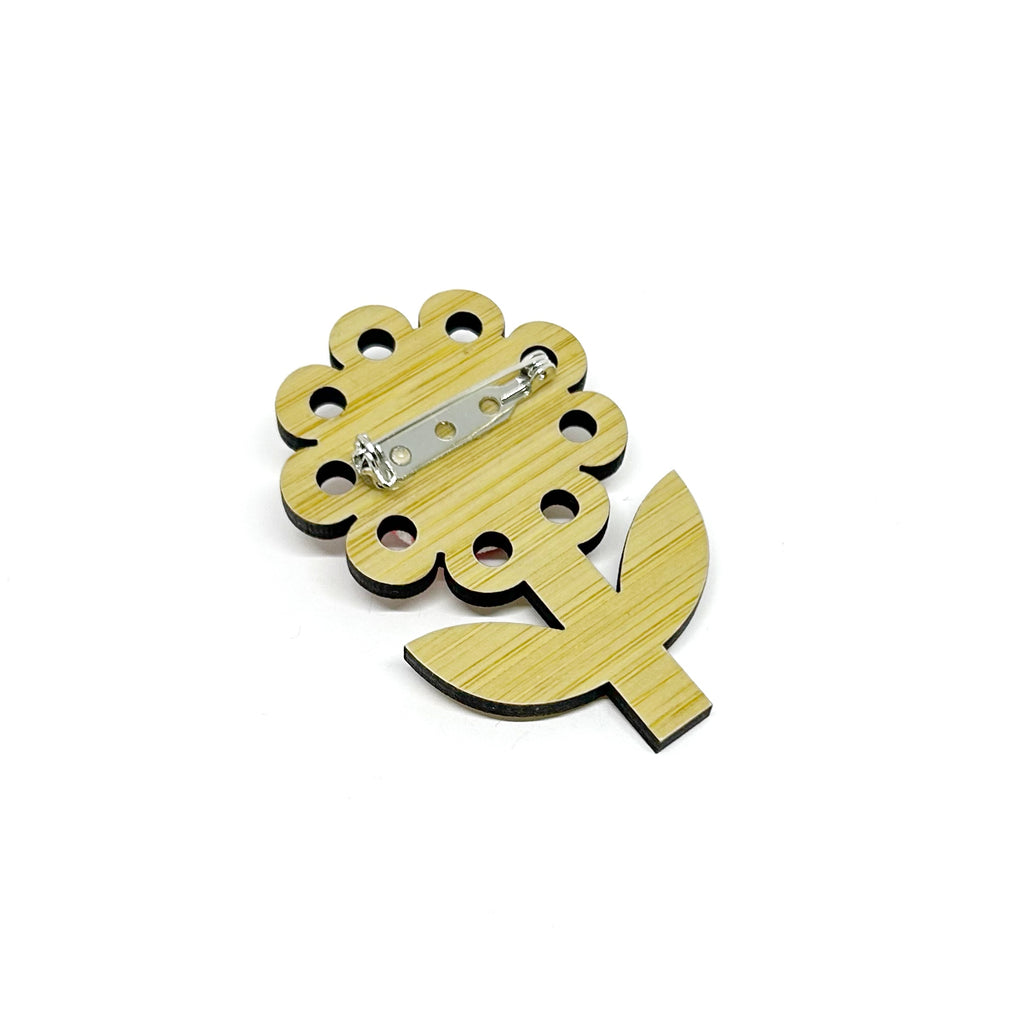 This Kimono Sunflower Brooch is handmade by me using laser cut Bamboo ply and a Vintage Kimono Button.