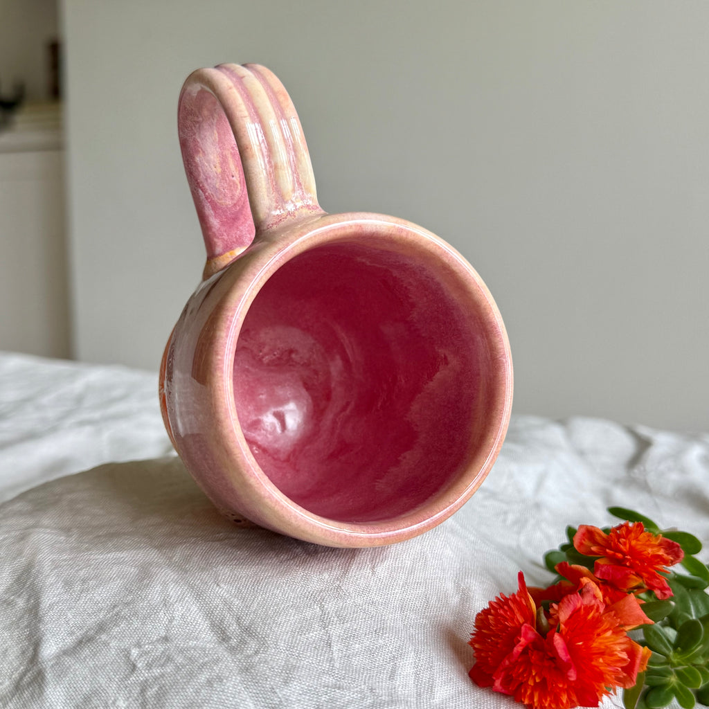 • A pop of pink and orange glazed interior
