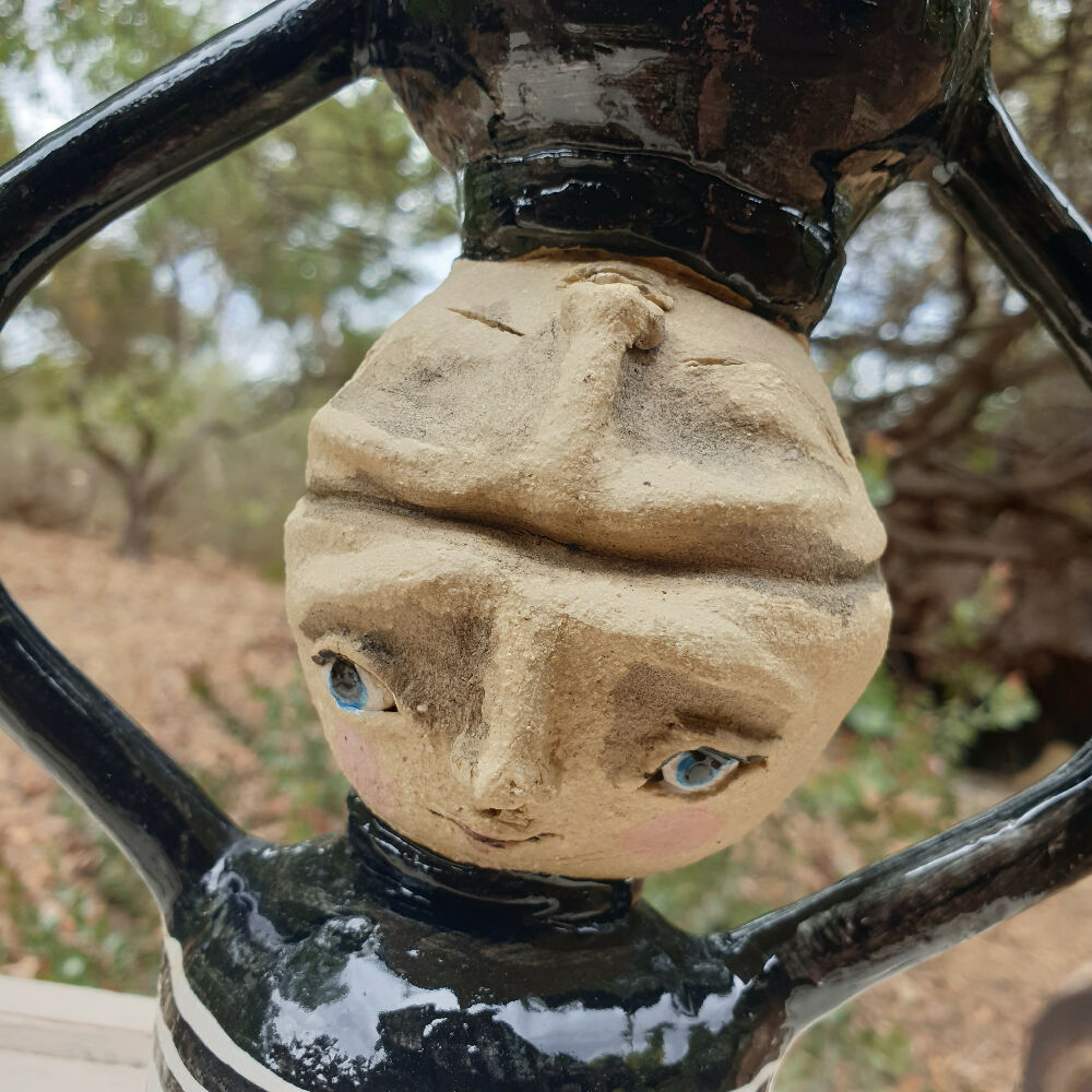 With a spacious studio and nature all around me, I am constantly inspired by the birds in the bushes, blooming flowers, and hidden natural treasures. I live with my head in the clouds, fueled by a vivid imagination that lets each piece springboard into the next. My process is fluid and intuitive-I start with the face, a method so ingrained it feels second nature, and let the ideas grow from there. I love working in small batches, often moving quickly from one idea to the next, ensuring my creativity stays fresh and vibrant.