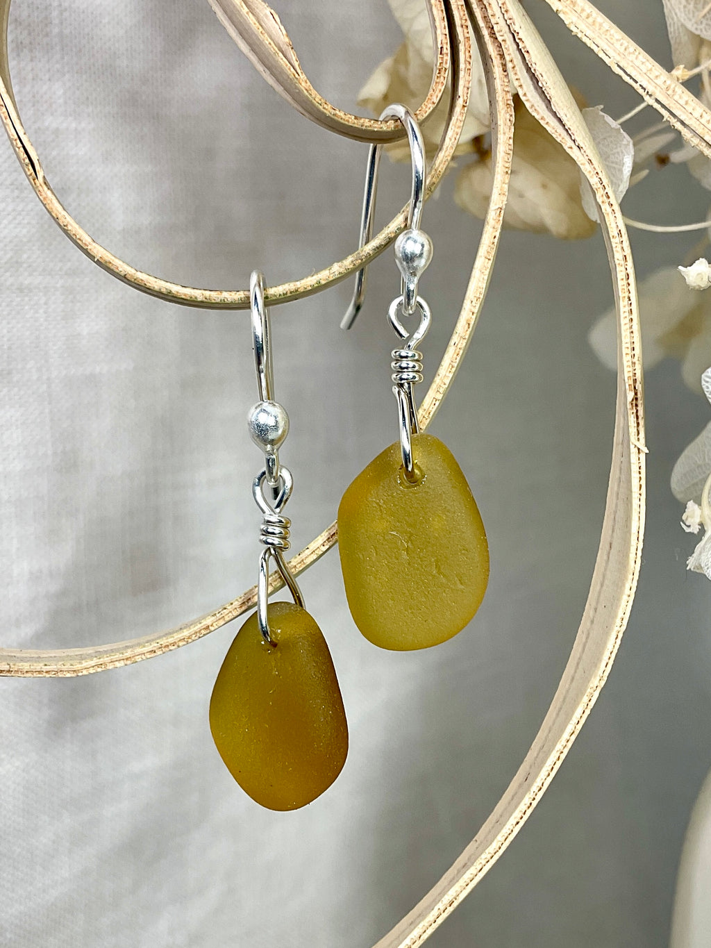 These super cute sea glass earrings have a lovely warm amber glow. They are light and easy to wear.