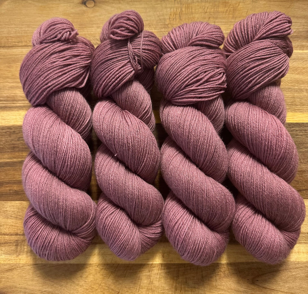 Available is 1 x 100 gram skein of 85% Extra Fine Merino Wool, 15% Nylon superwash yarn in a fingering or 4 ply weight.