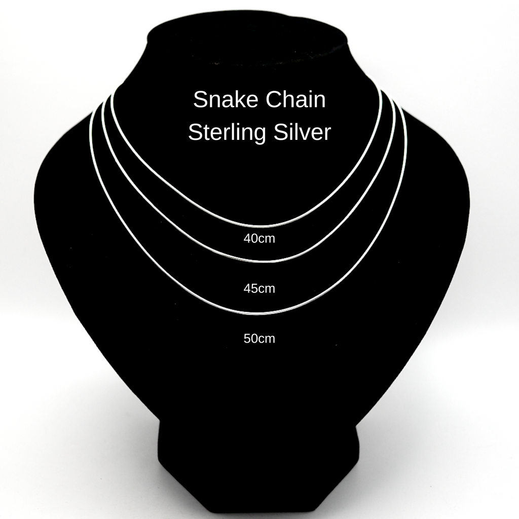 40cm (almost 16inch), 45cm (almost 18inch) or 50cm (almost 20inch) snake chains available (please select)