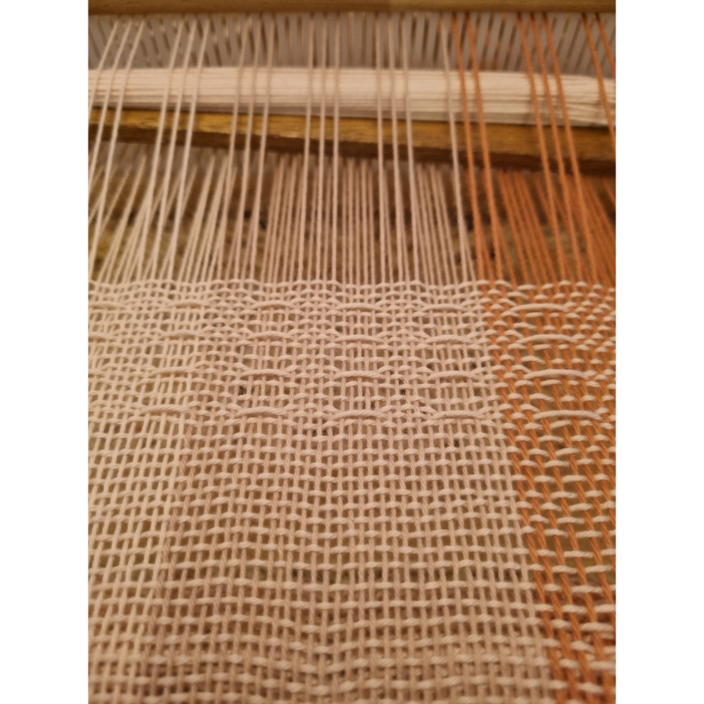 This handwoven cotton scarf has been inspired by a new year of experimentation, of trying something new. In this design I have created, I've used a pickup stick. This technique usually features intricate, detailed patterns that appear to 'float' above or 'pop out' from the background fabric. This technique involves manually manipulating warp threads with the pickup stick during the weaving process to create specific designs, with a unique texture and visual depth evolving.