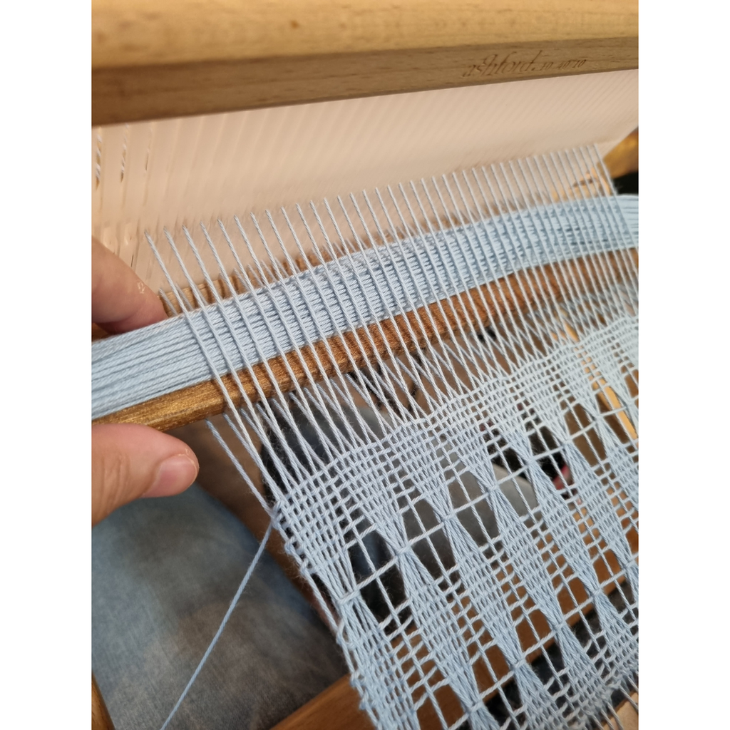 This handwoven cotton scarf has been inspired by a new year of experimentation, of trying something new. I've played with a brooks bouquet technique to create this pattern and decided to do this all the way through this scarf. You use a hand-manipulated, finger-controlled technique with each bouquet carefully created by me. I love the pattern it has created and the scalloped edge it has formed, all woven on my rigid heddle loom.
