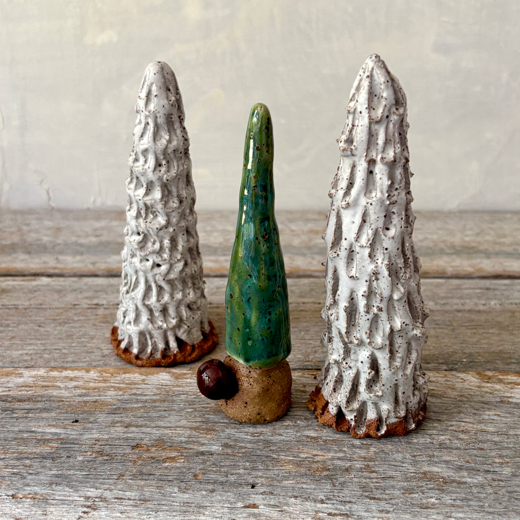 This set is handcrafted from rustic, speckled stoneware clay, making every piece one-of-a-kind. Standing between 10-12 cm tall, they’re perfect for decorating your mantelpiece, windowsill, or holiday table.