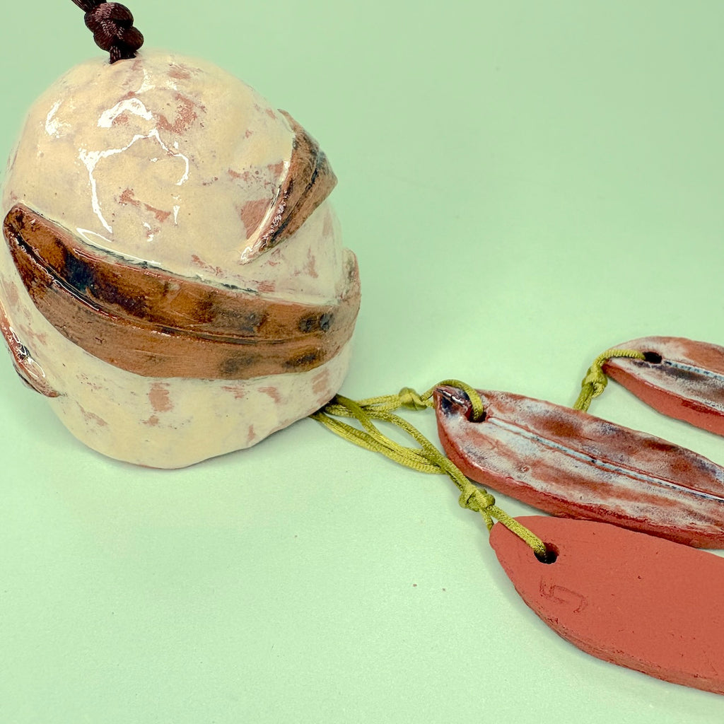 Bring a touch of artisanal charm and soothing sound to your space with this handmade ceramic wind chime.