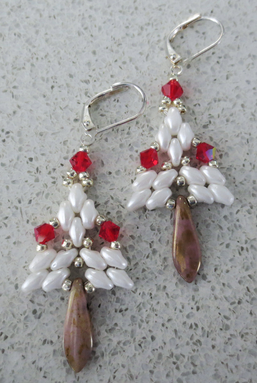 These pretty little hand beaded Christmas tree earrings measure approximately 5.5 cms, including the silver ear hooks.