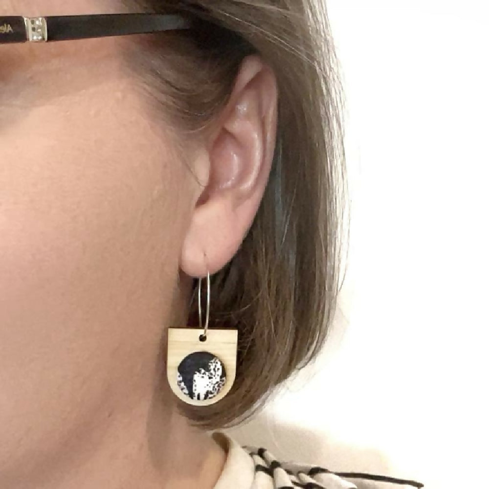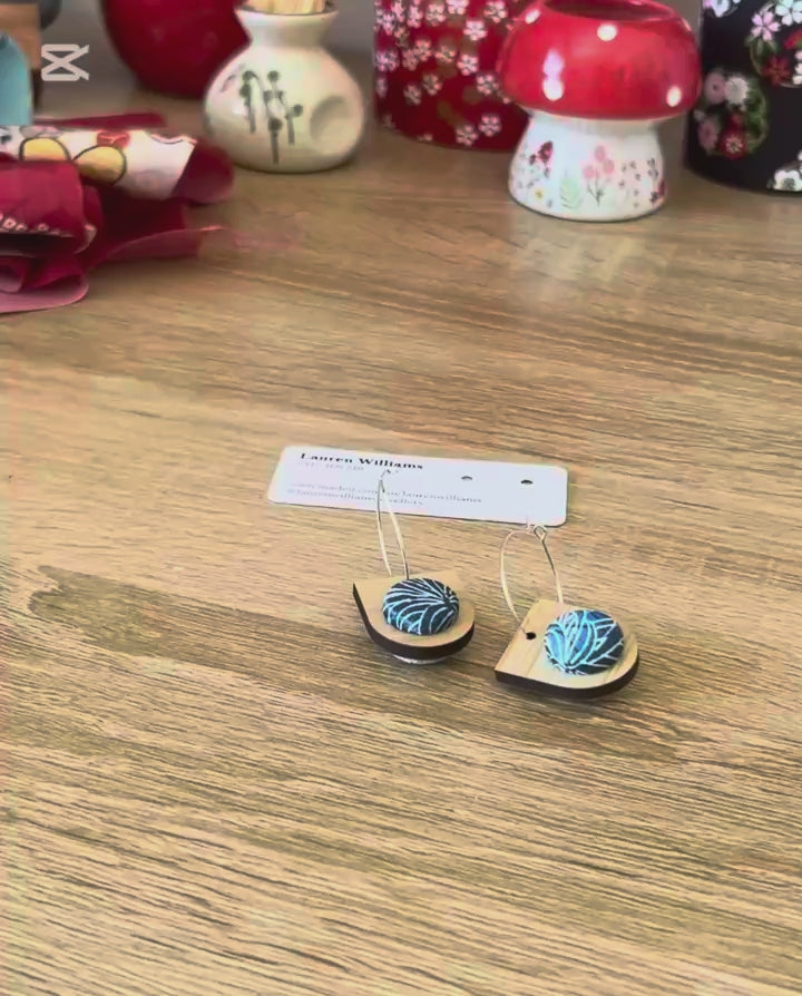These bamboo ply and fabric drop earrings are handmade by me using beautiful Japanese Kimono and laser cut bamboo ply.