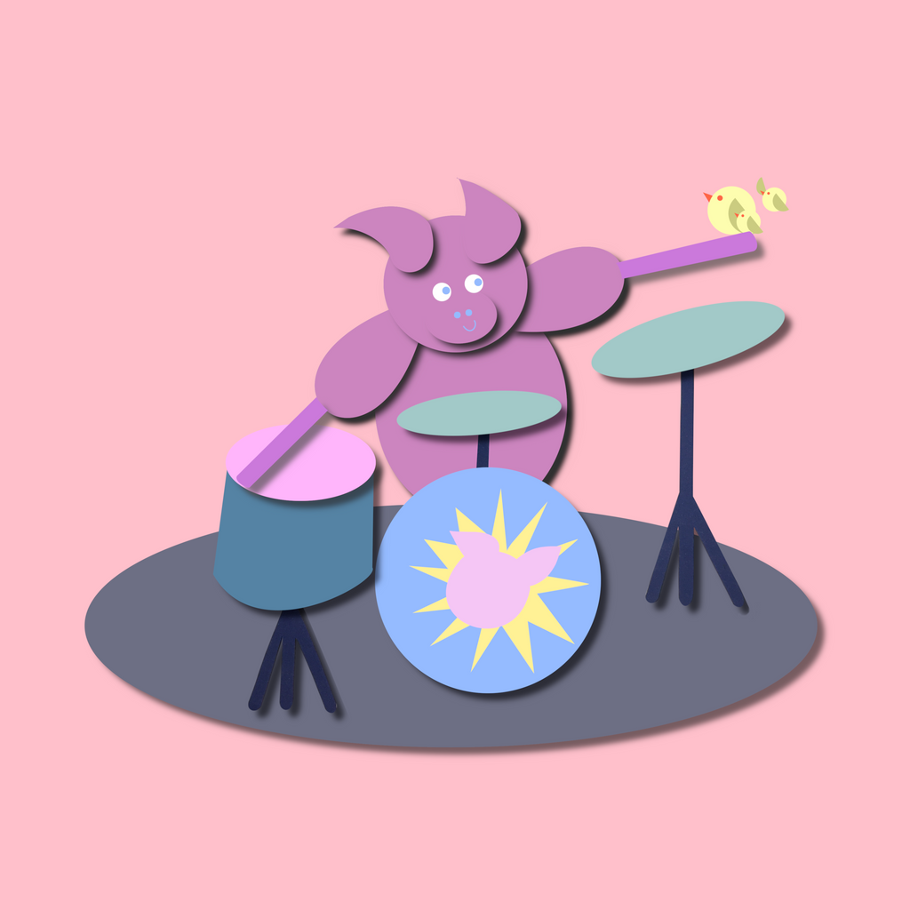 Delightful mini art with wooden stand. Drum pig in the spotlight with birdy friends. 100mm x 100mm archival-quality print on Hahnemuhle Photo Cotton Rag 308gsm, one of the world’s most popular Fine Art papers. Sanded pine stand 70mm x 35 mm x 18mm approx. Perfect for display stand, book shelf or bedside table. Gorgeous gift for boys and girls!