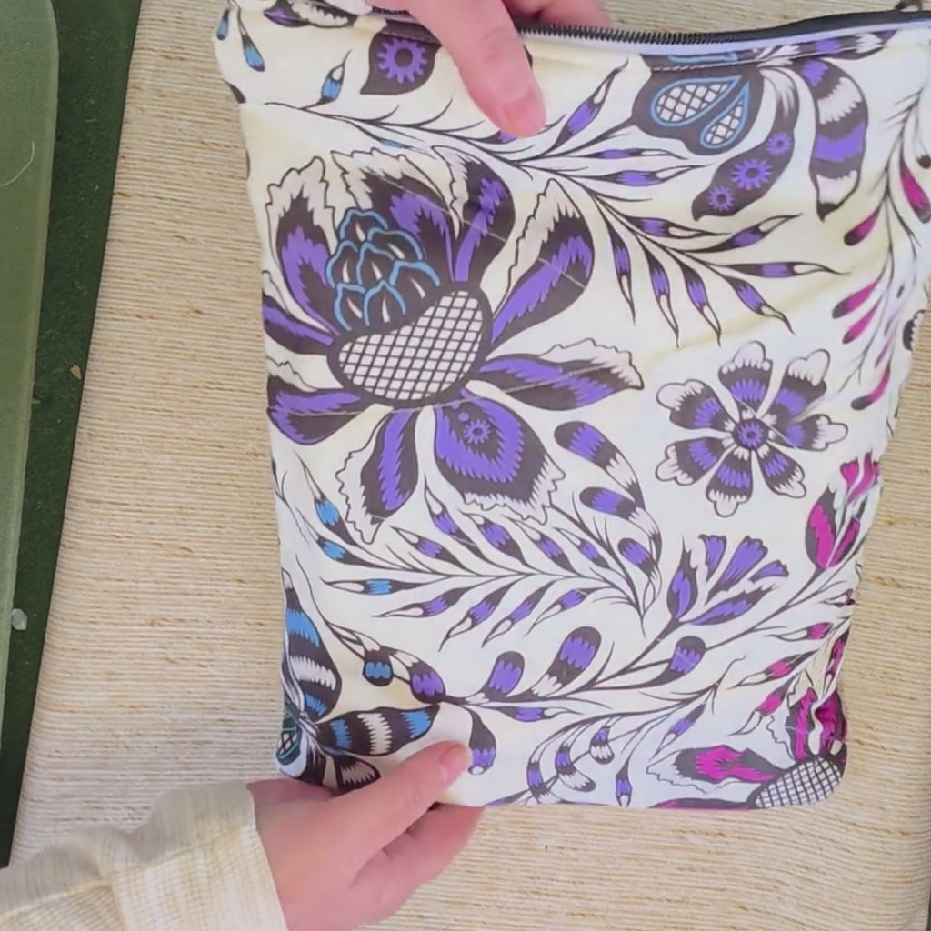 Ideal for keeping your book or tablet safe, these quilted and padded sleeves have plenty of room for several books or a 14-inch tablet or laptop. Available in a variety of designs, but with limited quantities of each. An ideal gift to supplement a book or tablet. The lining is attached at the bottom, meaning it will stay inside the pouch when you remove your item.