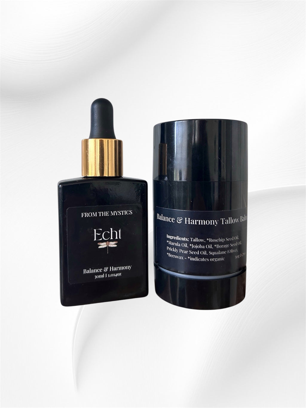 The ECHT Skin Restoration Bundle pairs our ECHT Tallow Face Balm with our ECHT Face Oil to support skin that feels dry, reactive, tight or suddenly “different” — especially during perimenopause and menopause.