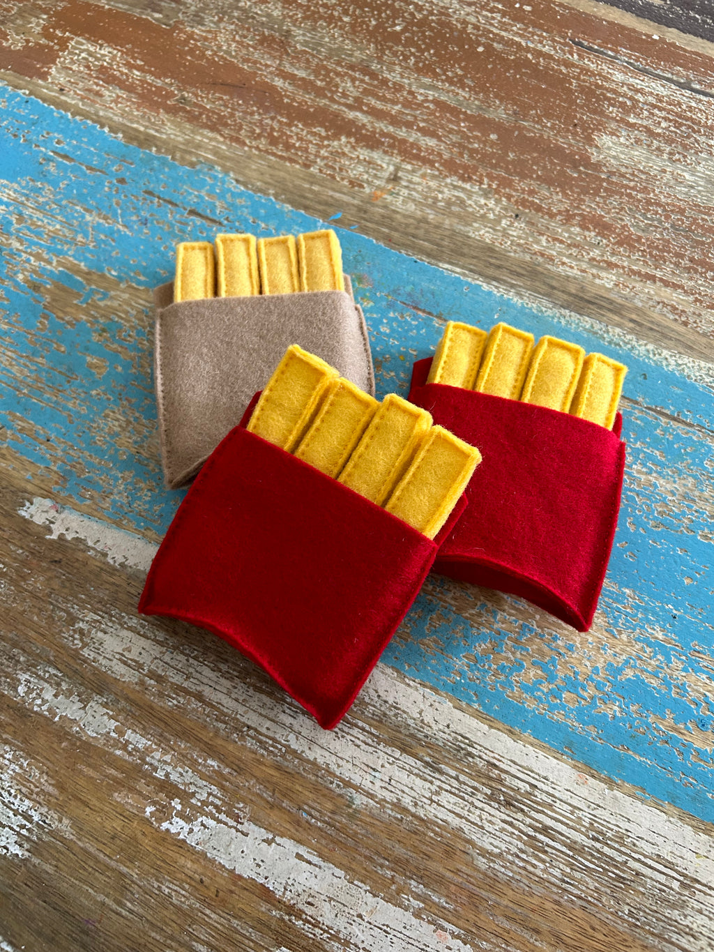 These fries come in a box (choose from red or "paper" colour) and can be taken out of the box for serving! Each fry measures 10 cm high.