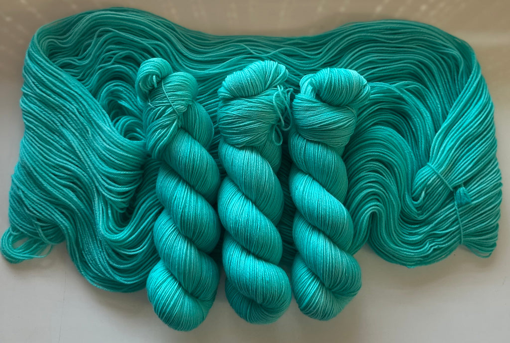 Available is 1 x 100 gram skein of 85% Extra Fine Merino Wool, 15% Nylon superwash yarn in a fingering or 4 ply weight.