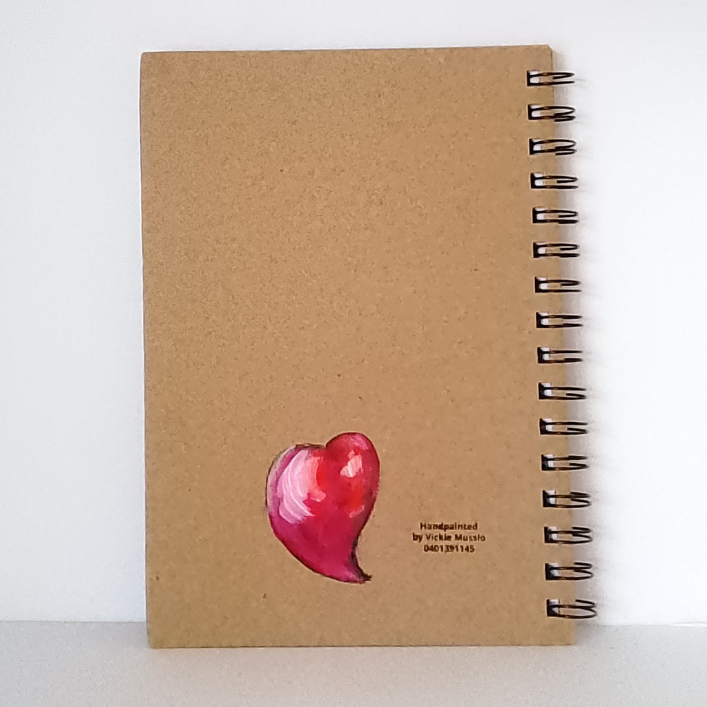 Handpainted Galah Notebook – featuring a couple of love birds with lots of hearts.