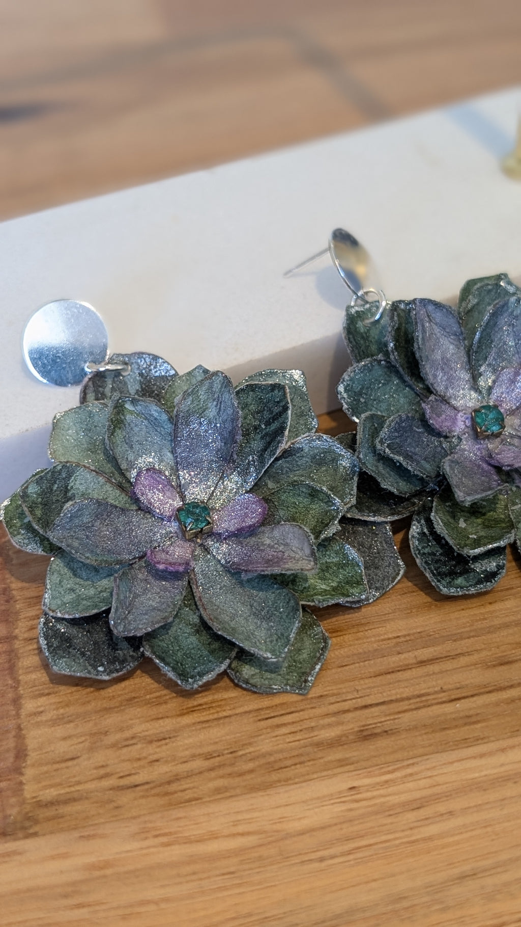 These earrings were inspired by Haworth’s aeonium, a succulent that can always be found in my garden.