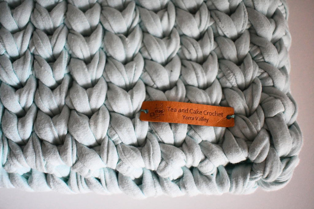 It gives me a little buzz knowing this is crocheted in fabric yarn made from recycled material from the textile industry and we've saved it from going into landfill- yay us!
