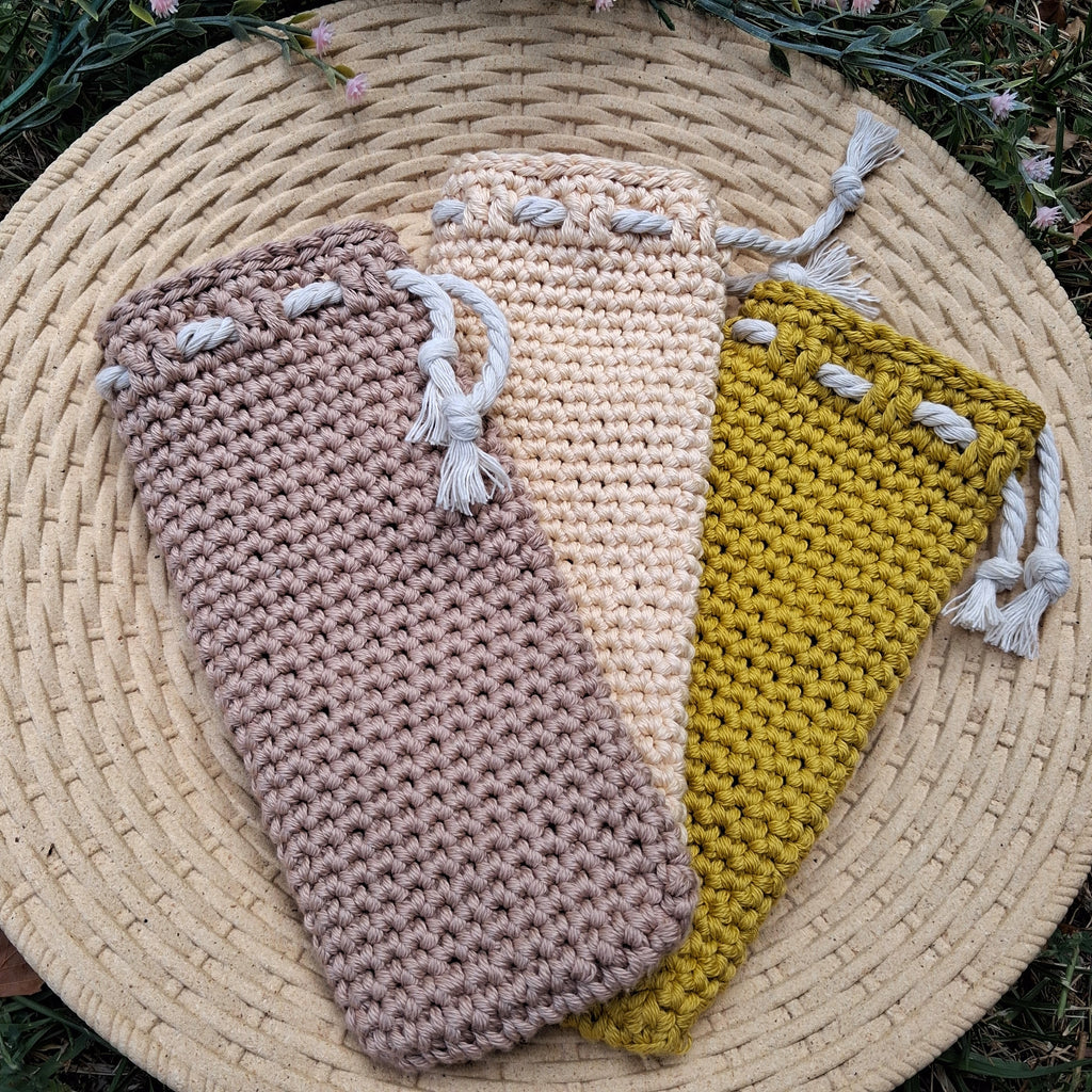 Keep your glasses cosy and protected in one of these handmade crochet cases. Carefully made from thick, durable cotton with a secure drawstring cord tie, they’re perfect for everyday use or popping into your bag. Soft, sturdy, and thoughtfully made — a lovely little gift for yourself or someone special. 💛