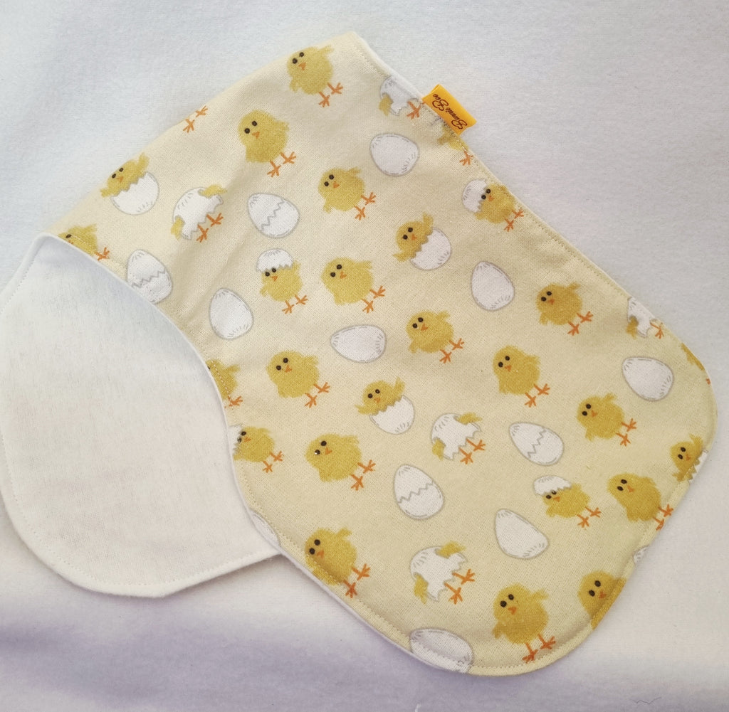The burp cloth is made from soft flannelette on both the front & back and features a curve that fits snuggly into your neck.