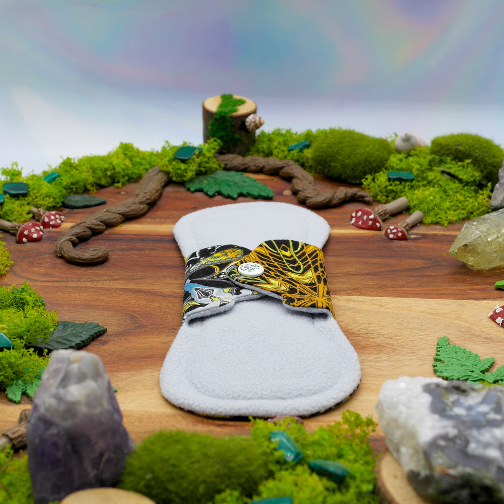 Elevate your period experience with reusable cloth pads - Hand made in the northern suburbs of beautiful Brisbane, this one of a kind cloth pad was intentionally made just for you. Pads are worn "pretty side" up and easily click together with durable KAM snaps. Each pad is made with luxuriously soft fabrics, lots of TLC and leakproof softshell to ensure you can go about your day with total peace of mind. Change them whenever you need to, store them in a wetbag (or basket) and throw them in the washing machine when you're ready! Every single item has been made with lots of love and soul for you to embrace your period and 'dig the flow'.