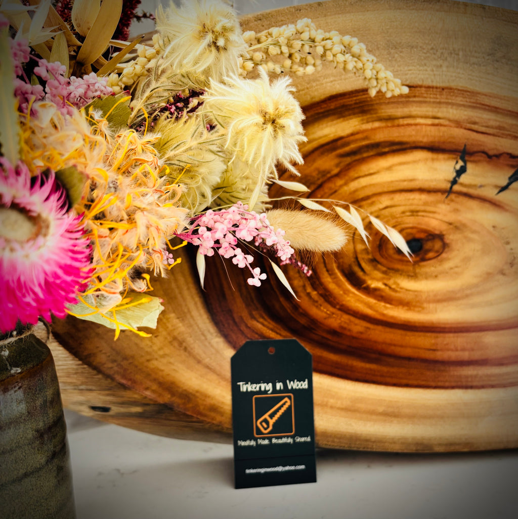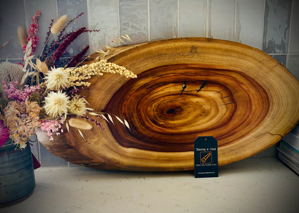 Handcrafted from richly grained camphor laurel hardwood, each board is a celebration of nature’s beauty and resilience. Naturally antibacterial for life, these charcuterie and chopping boards are lovingly shaped, detailed by hand, and finished with a food-safe stain that enhances both their durability and charm. Made to bring people together — from prep to presentation. 290x600x42mm