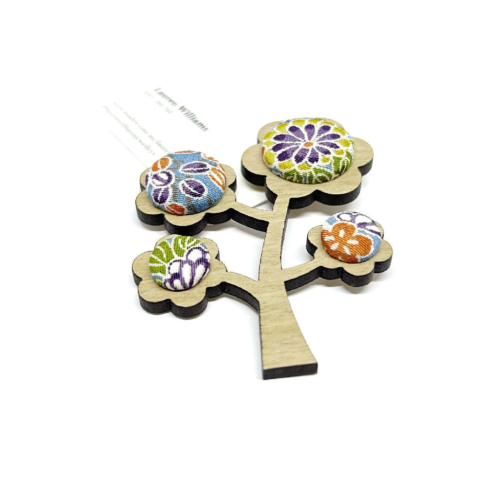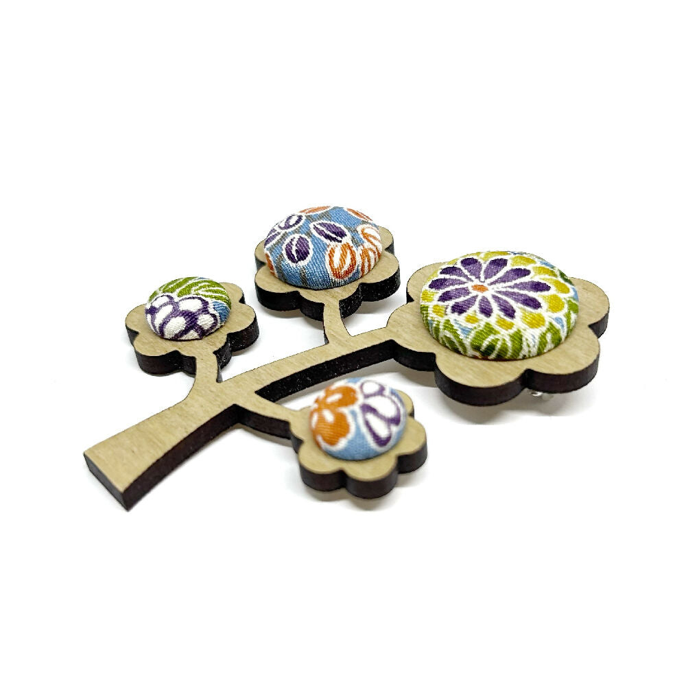 Kimono Tree Brooch - Multi Blues
