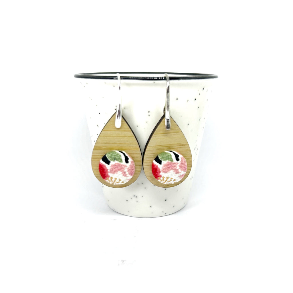 These XL Kimono Tear Drop earrings are handmade by me using beautiful Japanese Kimono and laser cut bamboo ply.