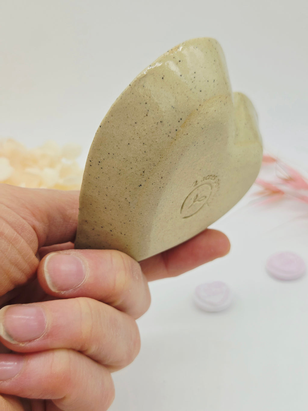 Cute small love heart dish - hand built in stoneware clay. Perfect for use as a decorative or functional piece. Dishwasher safe. Can be used to store jewellery, for lollies and treats, as a dip dish - the possibilities are endless.