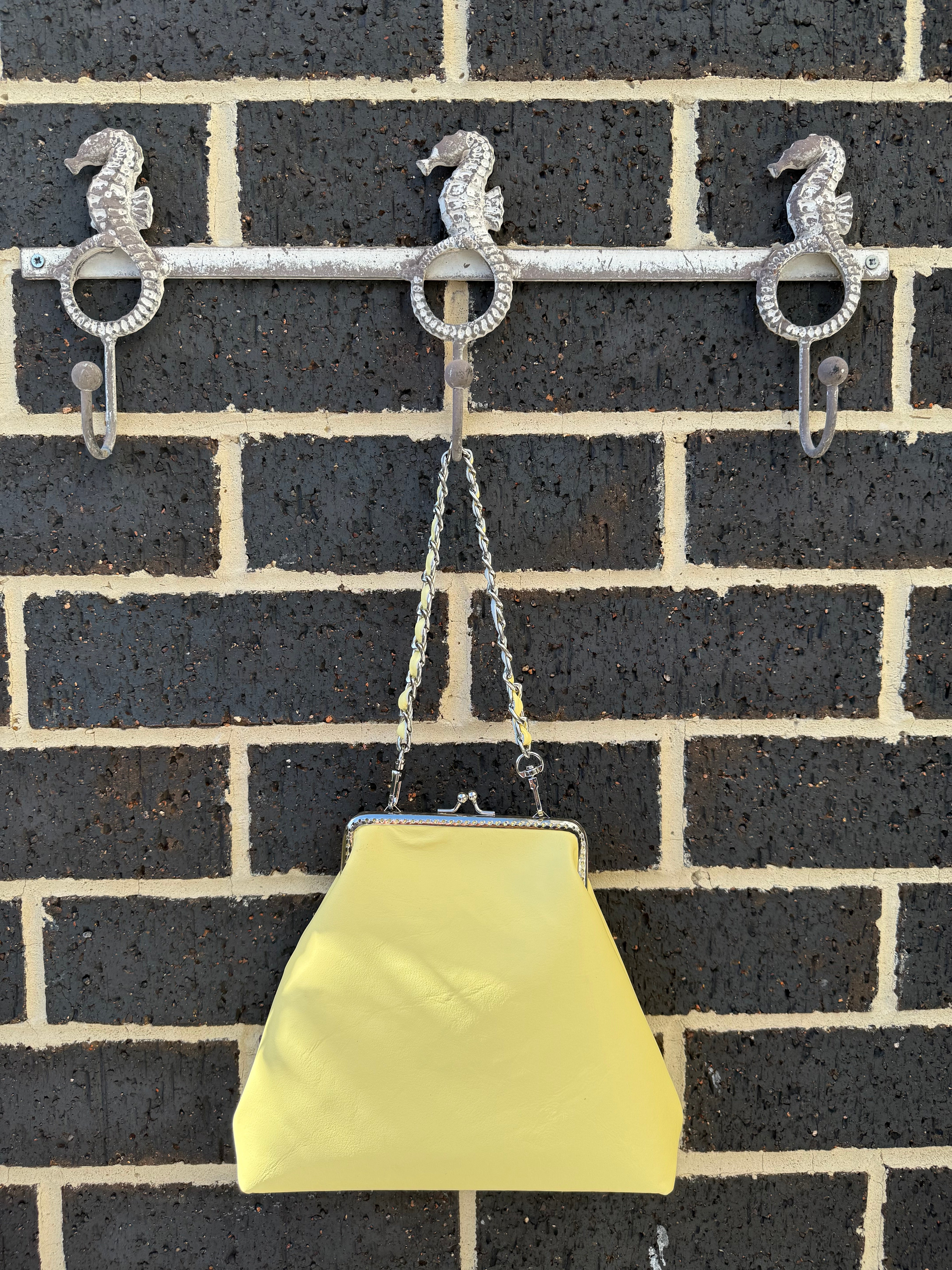Size approximately 23 cm *20 cm from the bottom to clasp. Bottom 21cm*8 cm. Chain 39 cm including lobster clips.