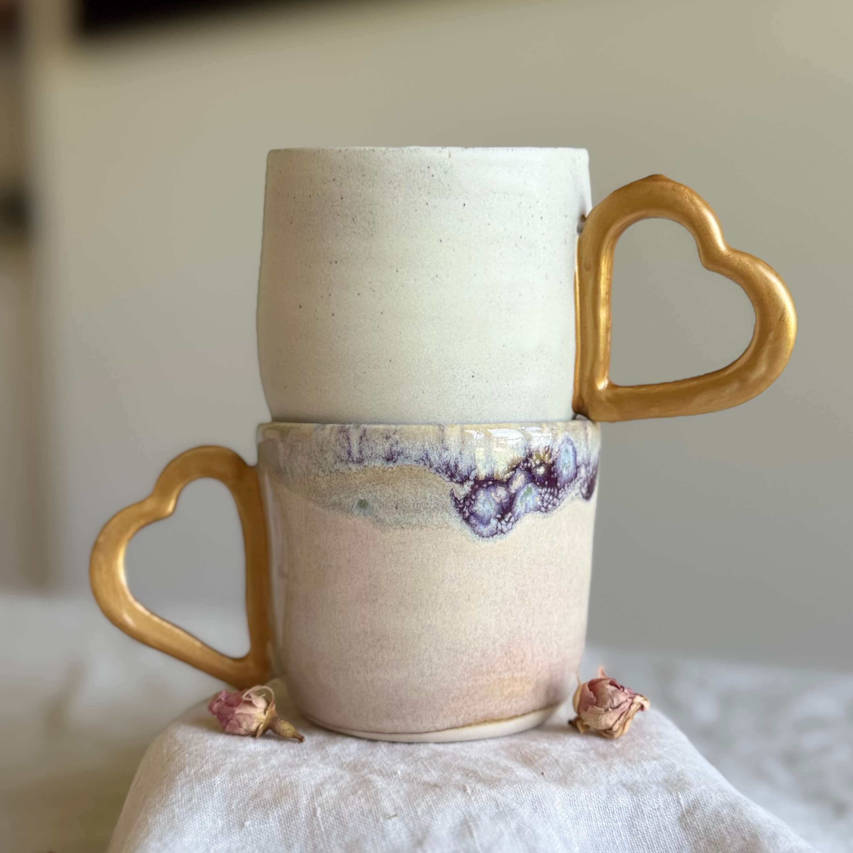 Wheel thrown in my Sunshine Coast studio, these Mi Amore – Seafoam Edition mugs are dipped in a soft seafoam glaze that glides gently over warm, creamy clay. Each one has the signature heart-shaped handle — a little touch of romance for your everyday rituals.