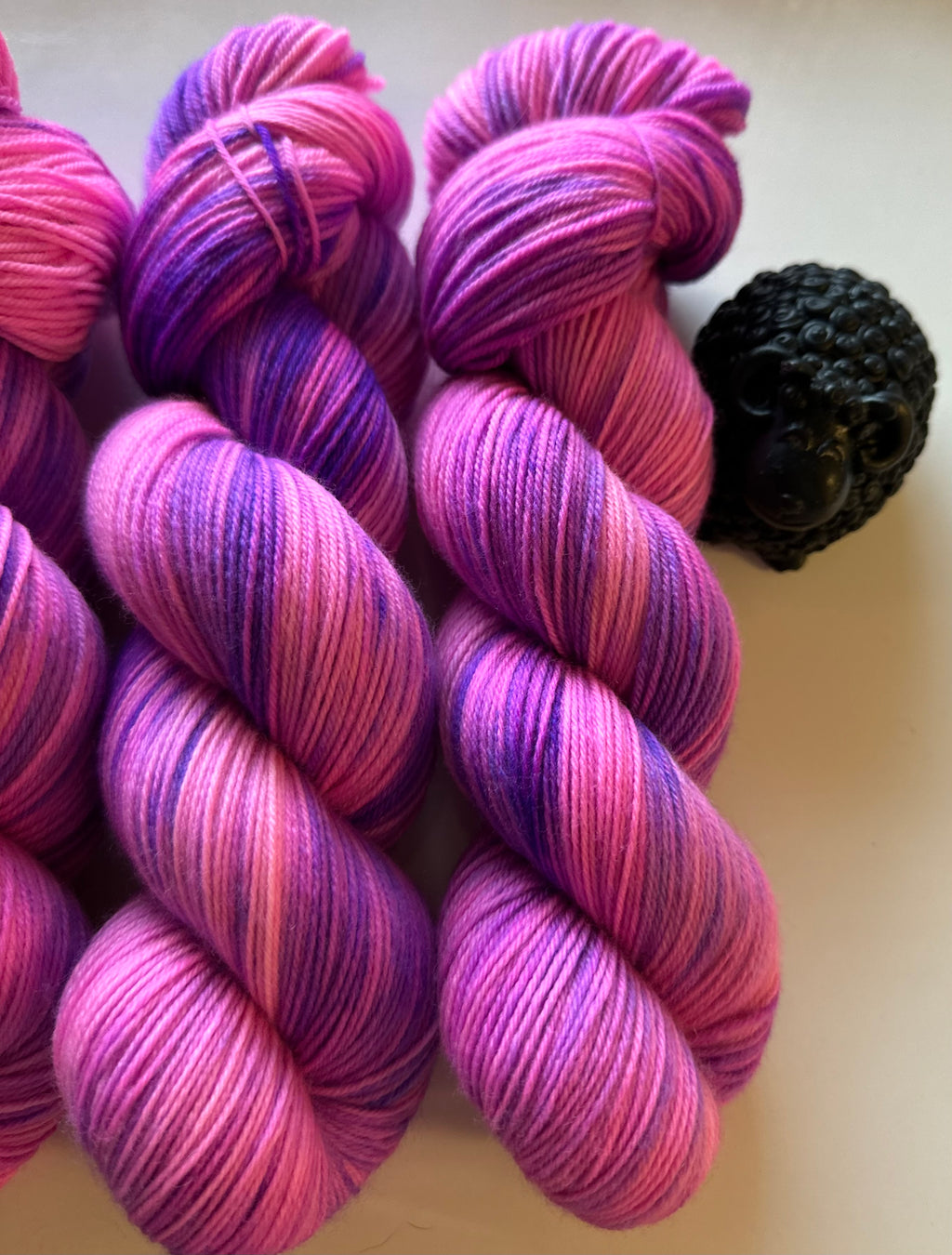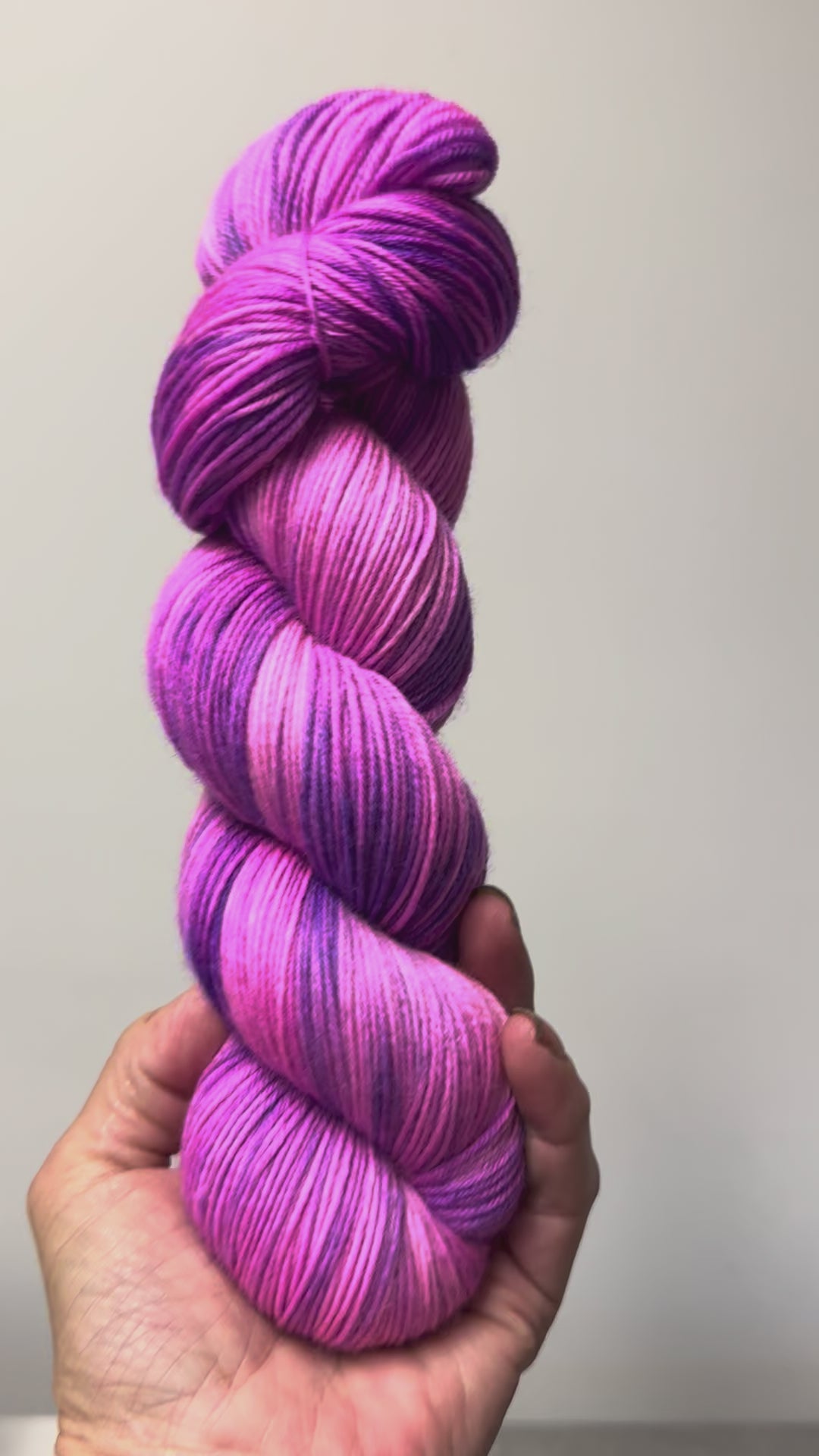 Available is 1 x 100 gram skein of 85% Extra Fine Merino Wool, 15% Nylon superwash yarn in a fingering or 4 ply weight.