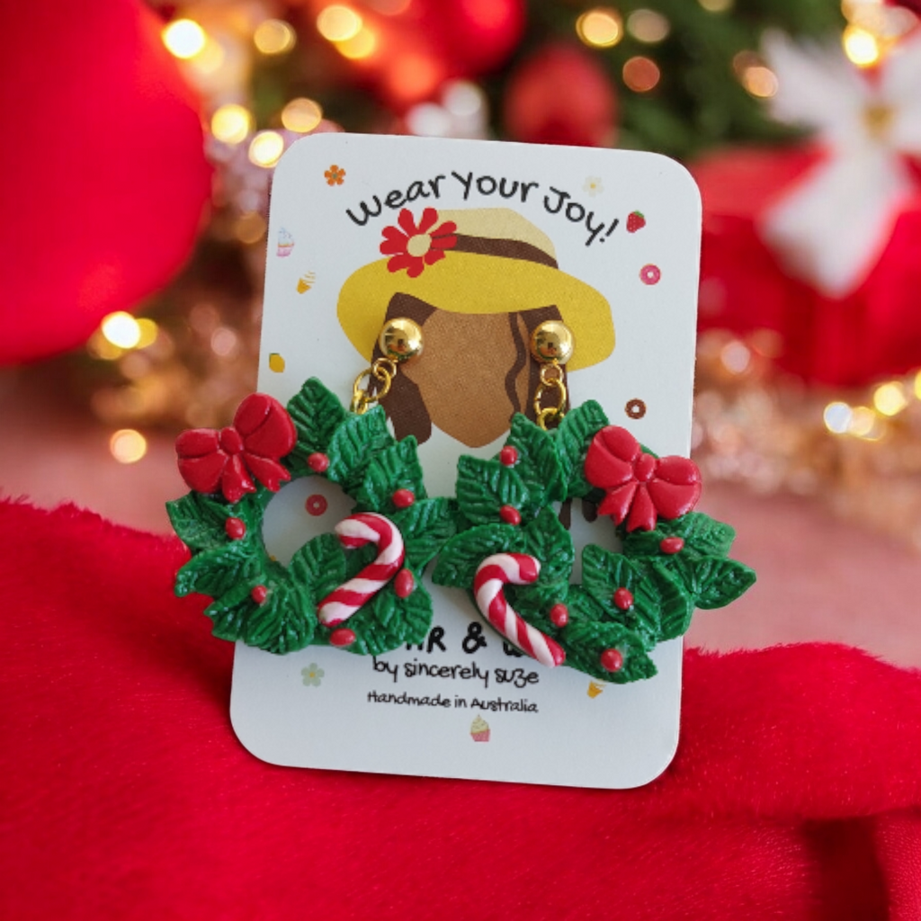 Each pair is lovingly handcrafted from lightweight polymer clay and finished with polished gold-tone findings. From twinkling trees to sweet little wreaths, these wearable wonders are designed to bring the joy of the season to every outfit.