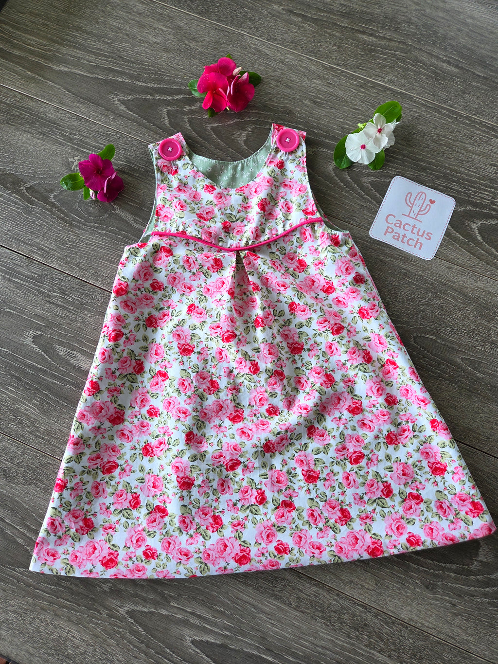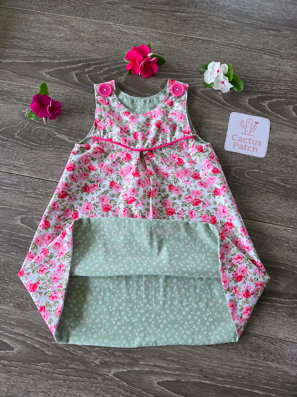 "Vintage Rosebuds" Reversible Pinafore Dress - Size 2 Years