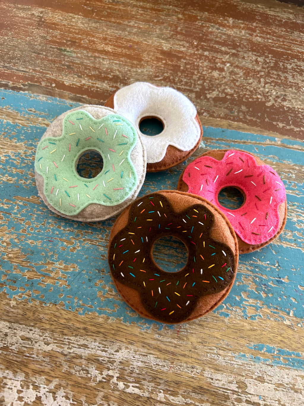 This listing is for ready to post 4 felt donuts in assortment of icing flavours: