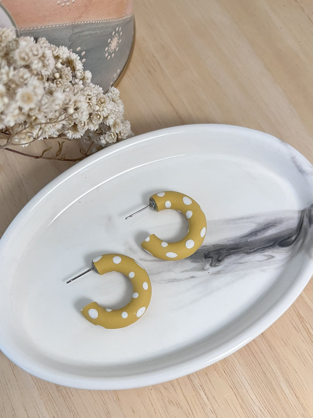 Whilst I strive to create the most perfect pair of earrings, there may be some slight imperfections as this is the beauty of handmade and the nature of working with Polymer Clay.