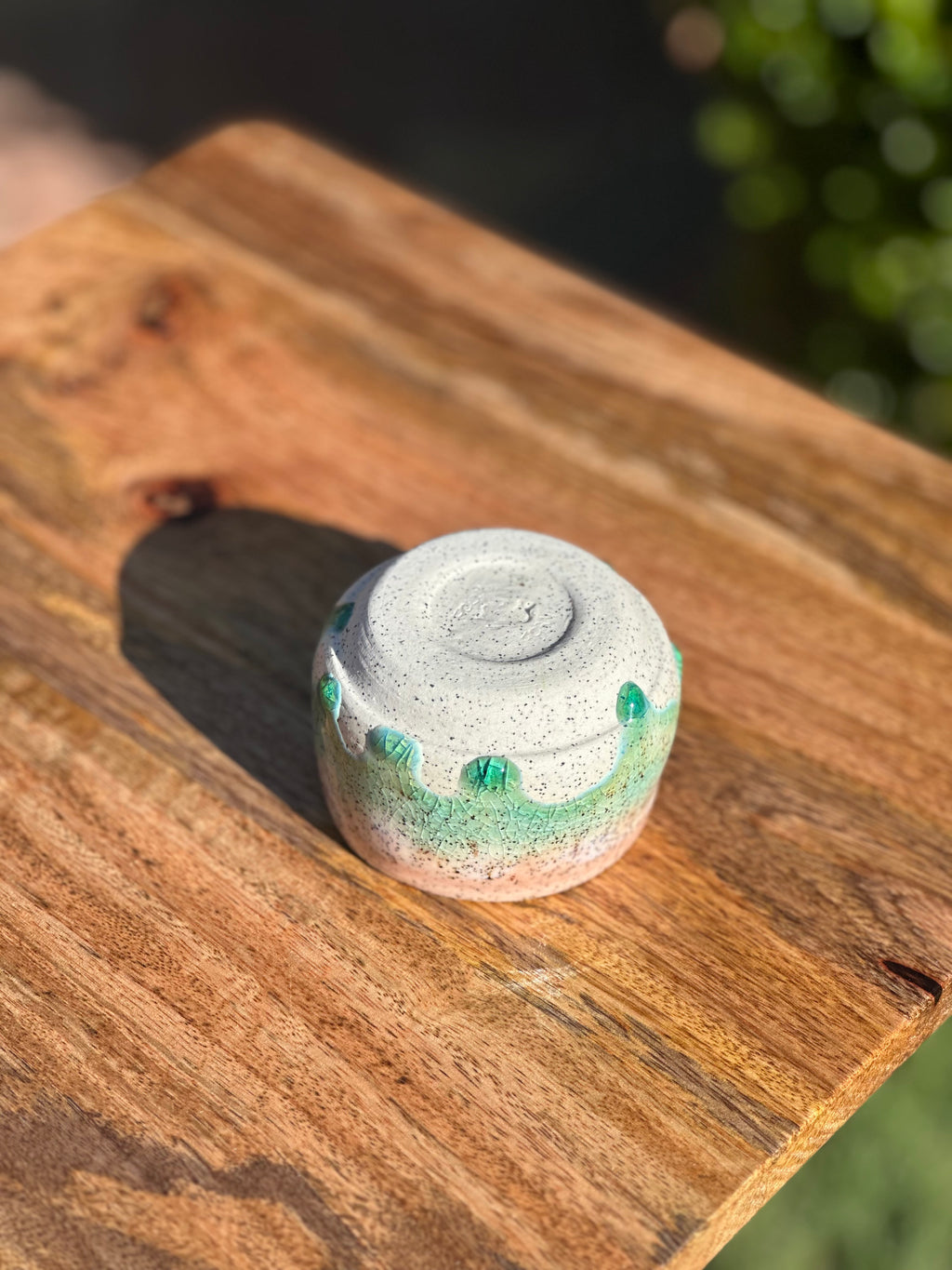 This small ceramic pot evokes the quiet beauty of a mountain lake meeting stone. Cool mineral greens flow over warm blush pink tones, while a delicate crackle glaze adds depth, movement, and subtle drama.