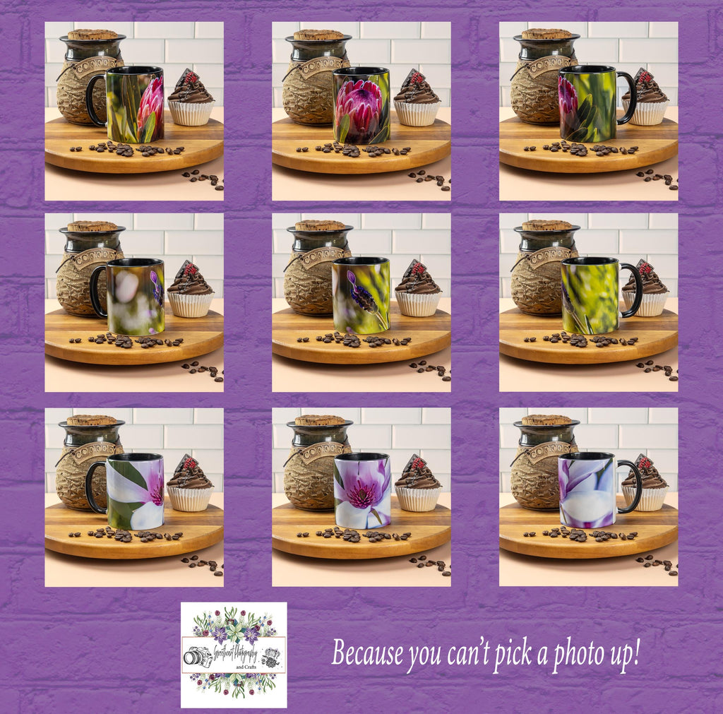 These 11oz mugs are wrapped with an original photographic artwork and feature a black handle and interior. In this collection there are three gorgeous garden beauties to choose from: