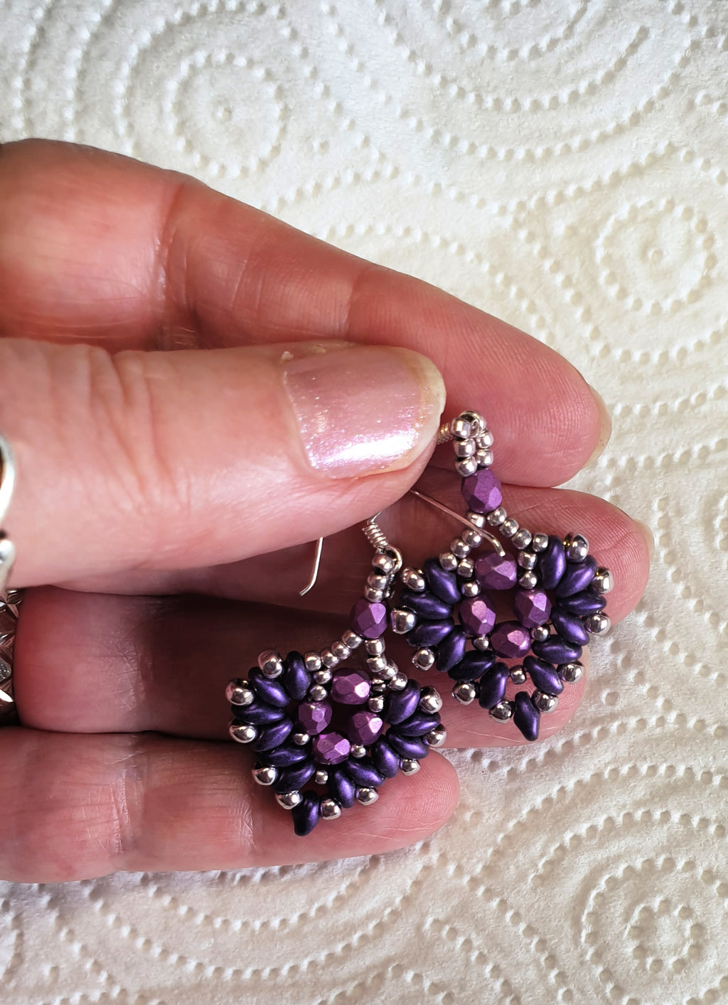 Ear hooks are sterling silver.
